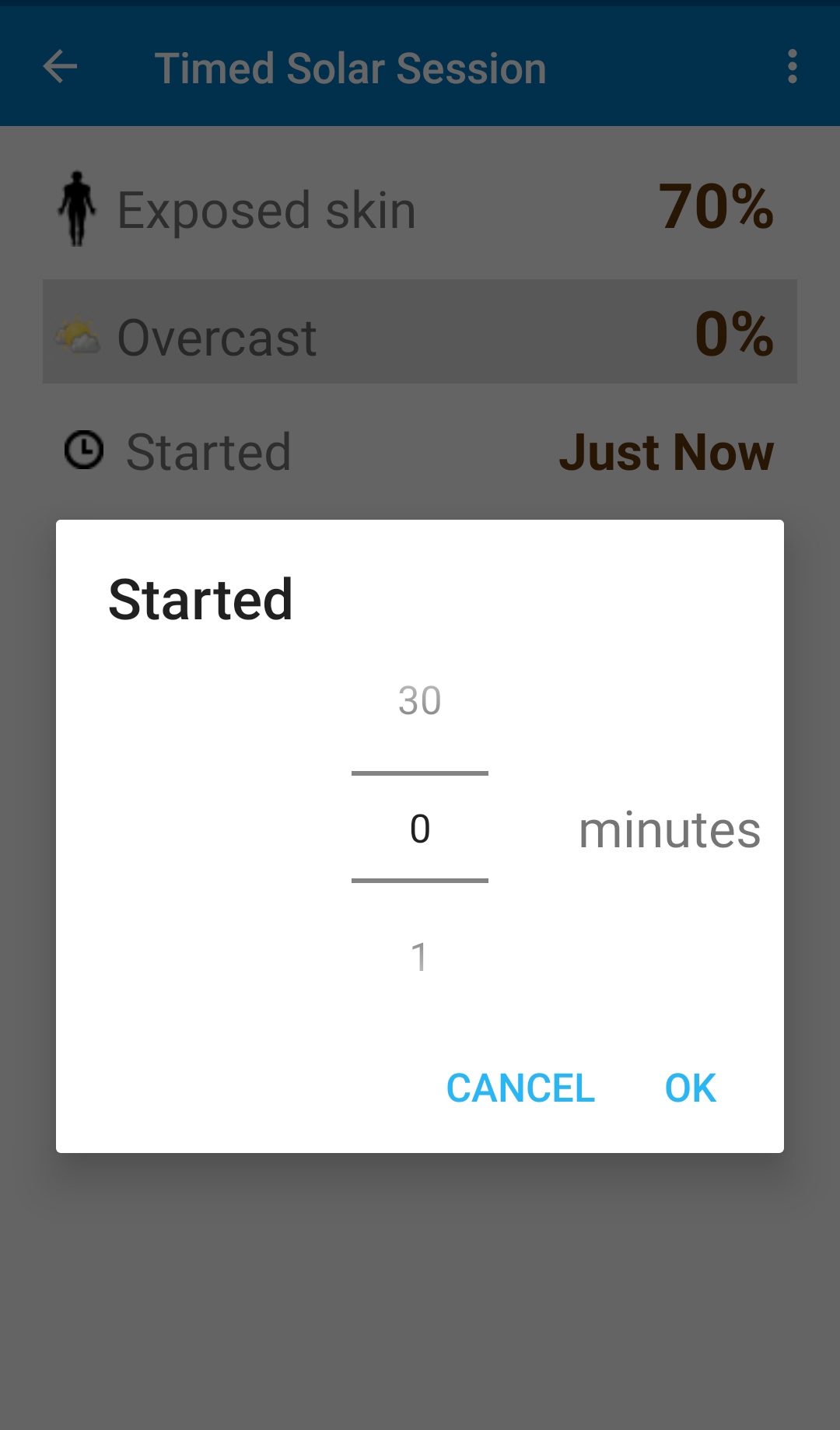 En el siguiente menú podremos editar el temporizador, bien por limite de tiempo o bien por límite de vitamina D. Si no tienes prisa por tener que ir a algún sitio, mi consejo es que dejes el tiempo por defecto, ya que la app te va a avisar cuando llegues a tu tiempo máximo para que finalices la exposición.