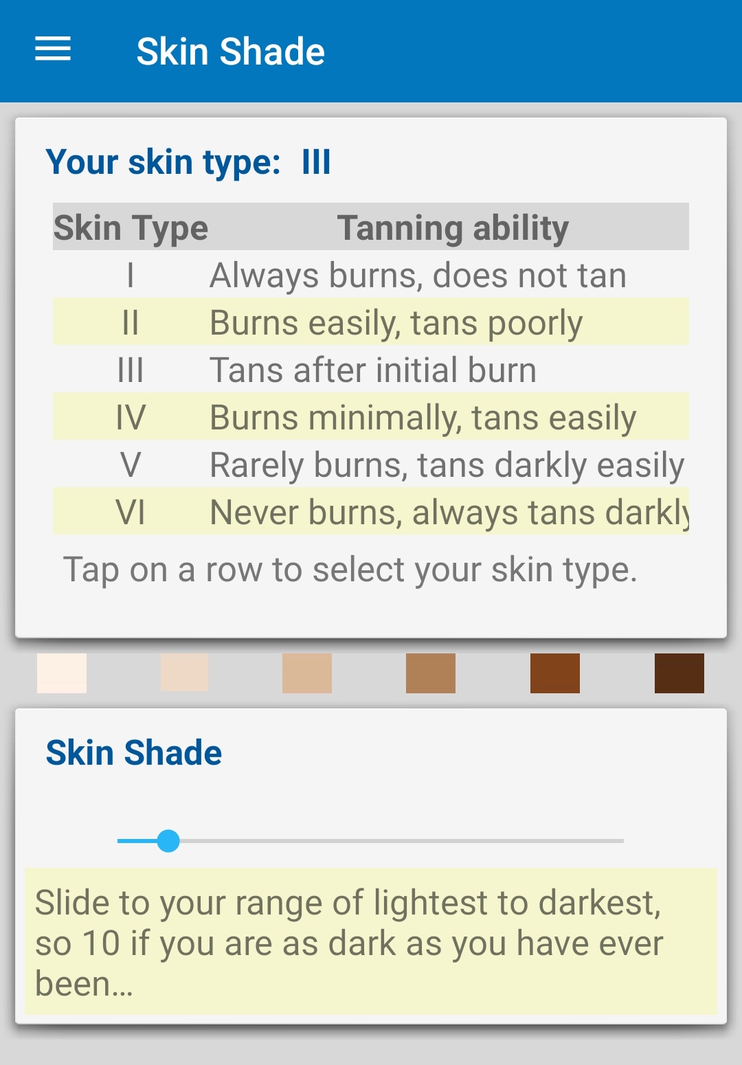 Posteriormente la pigmentación, donde debemos indicar el tipo de piel y el tono, tal y como vimos en la primera parte. Estos valores pueden variar a medida que avancemos en nuestro “entrenamiento” UV. Por lo que mi consejo es que los compruebes cada mes.