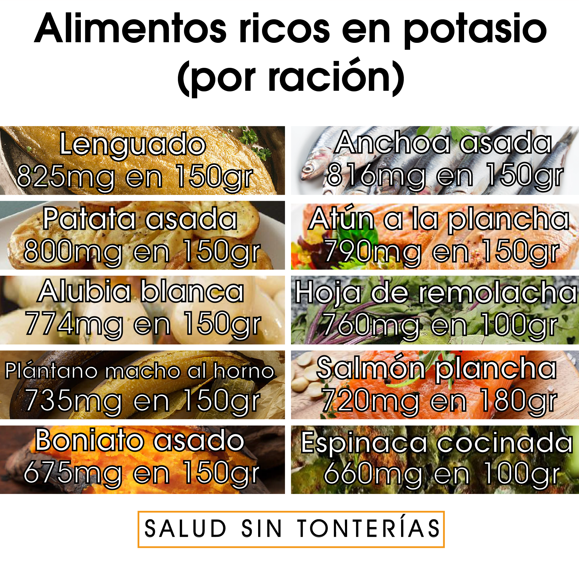 Llegados a este punto ya conoces cuanto potasio necesitas: 4700mg mínimo, y los alimentos más ricos en este mineral.