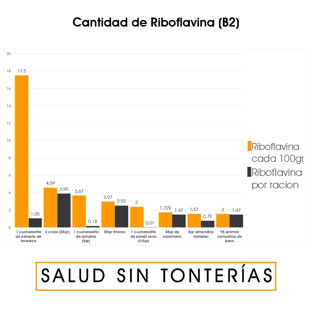 No obstante, si comparamos las cantidades de B2 en 100gr con las cantidades por ración, la cosa cambia.